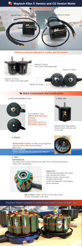 These MTO6374-170-HA-C4 Electric motors are the bigger version of MTO6365-170-HA-C4, the super popular and are great for those that want more torque from the longer magnets and don't worry about the increased weight if ripping it on off road boards. They are reasonably priced and reliable motors. They have been refined over the time and are now called "Battle Hardened" this means the magnets are epoxy glued to the case for extra durability from impacts and vibration. The bearings on the motor shaft have grown bigger to be stronger. The sensors are fixed securely and the temp sensor gives a good accurate reading for low temps for a almost sealed motor.